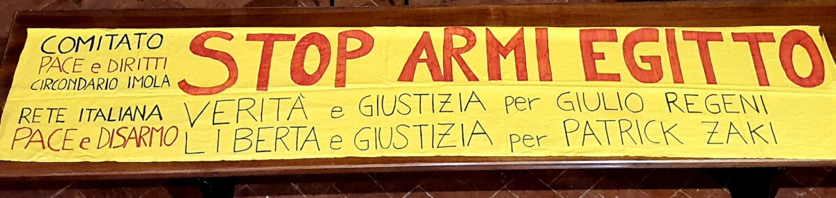 Verità e giustizia per Giulio Regeni, libertà e giustizia per Patrick Zaki e stop a tutte le forniture militari, in corso o in previsione, per l’Egitto. Queste le richieste al centro della mobilitazione promossa dalla Rete Pace e Disarmo per sabato 19 dicembre, a cui ha aderito anche il Comitato Pace e Diritti del circondario…Continua a leggereMobilitazione per Regeni e Zaki sabato 19 dicembre, iniziativa del Comitato Pace e Diritti anche a Imola