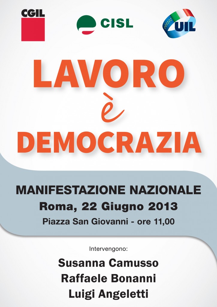 Sabato 22 giugno manifestazione nazionale Cgil Cisl Uil a Roma