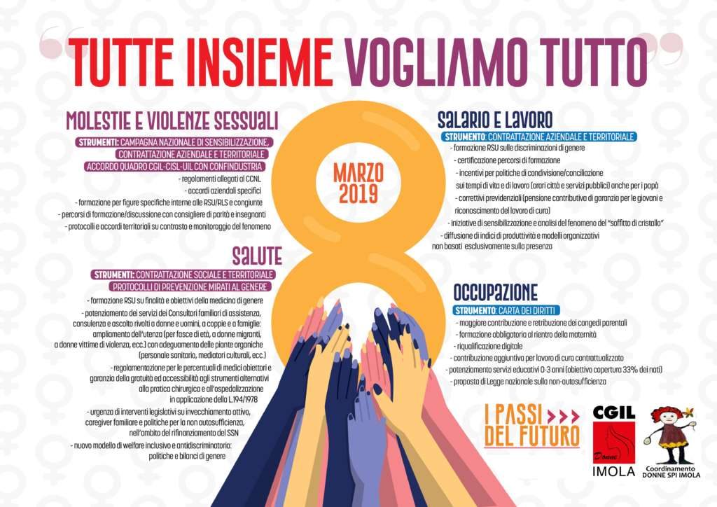 I Coordinamenti Donne Cgil e Spi Imola aderiscono alla mobilitazione globale delle donne, Lotto Marzo, e parteciperanno all’iniziativa promossa a Imola da Trama di Terre, contro ogni violenza sulle donne, contro il decreto Salvini e il disegno legge Pillon, per i diritti all’autodeterminazione delle donne.