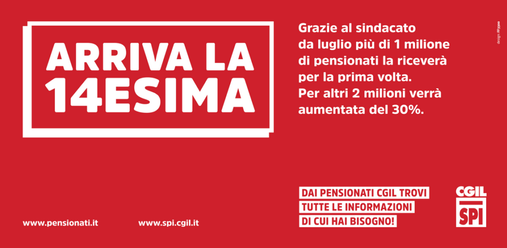 Chi vuole avere ragguagli sulla nuova quattordicesima, per sapere se gli spetta e cosa deve fare se non gli arriva automaticamente dall’Inps entro il mese di luglio o agosto, può contattare le leghe Spi-Cgil territoriali o telefonare allo Spi di Imola, tel. 0542/605631