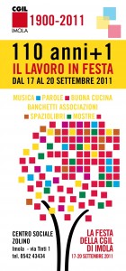 A chi non si rassegna e crede sia un diritto per tutti avere un futuro dignitoso, la Cgil di Imola dedica «Il lavoro in festa», quattro giornate di musica, incontri e buona cucina. L’iniziativa, organizzata in occasione dei 111 anni della Camera del lavoro imolese, si terrà da sabato 17 settembre a martedì 20 settembre a Imola al centro sociale Zolino, in via Tinti 1. Lo stand gastronomico, che proporrà piatti tradizionali, sarà aperto tutte le sere a partire dalle ore 19 e la domenica anche a pranzo. Cinque concerti, una mostra e, per chi vorrà fare un po’ di movimento, una biciclettata e una camminata. Non mancheranno poi i momenti di riflessione e confronto su lavoro, precariato, Costituzione e manovra economica, tema quest’ultimo che sarà affrontato lunedì 19 alle 21 dalla segretaria generale della Cgil, Susanna Camusso.