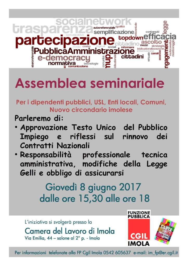 Assemblea seminariale per dipendenti pubblici giovedì 8 giugno