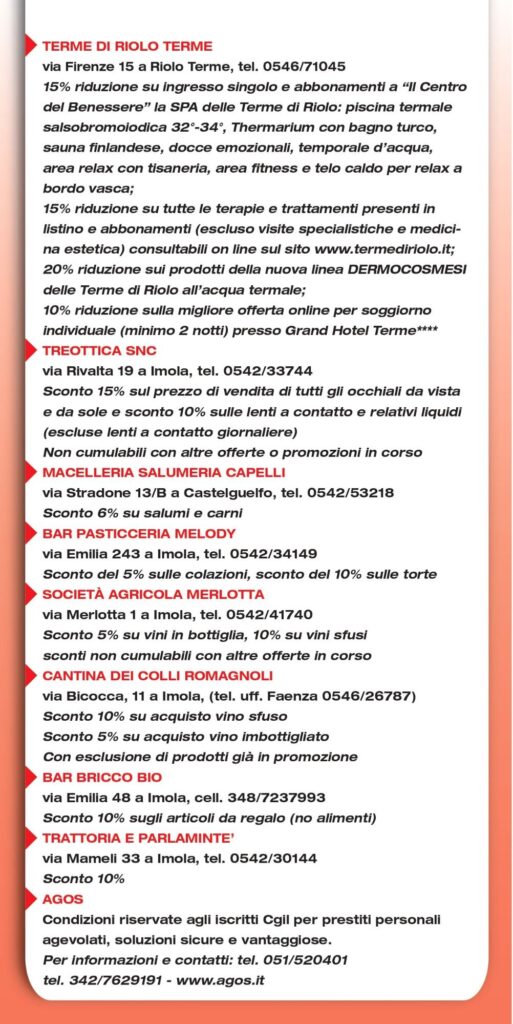 Convenzioni 2024 per chi è iscritto Cgil Imola