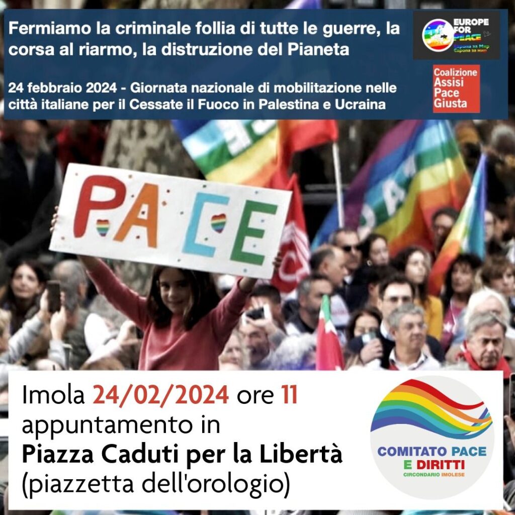 Promosso dal Comitato Pace e Diritti del circondario imolese. Piazza Caduti per la libertà (piazzetta dell’orologio), ore 11.