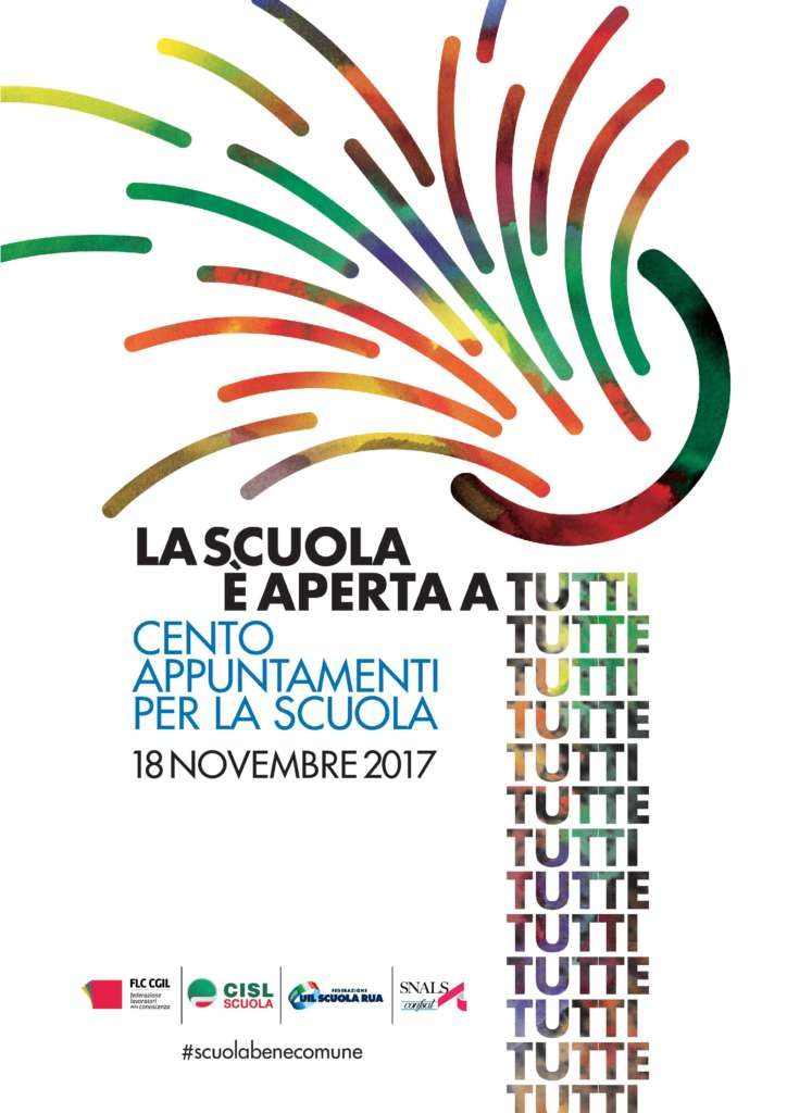 Oggi, sabato 18 novembre, sono in programma oltre cento iniziative in tutta Italia per rilanciare la realizzazione della scuola come comunità educante fondata sui valori della nostra Costituzione, fattore di crescita e speranza per le future generazioni.