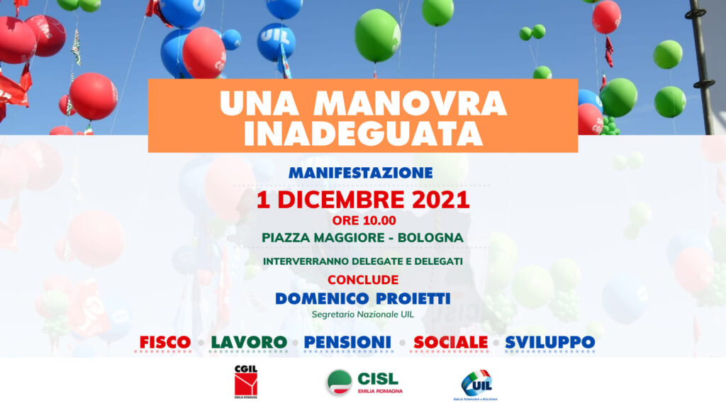 Mercoledì 1 dicembre, alle ore 10, in piazza Maggiore a Bologna si terrà una manifestazione regionale unitaria.