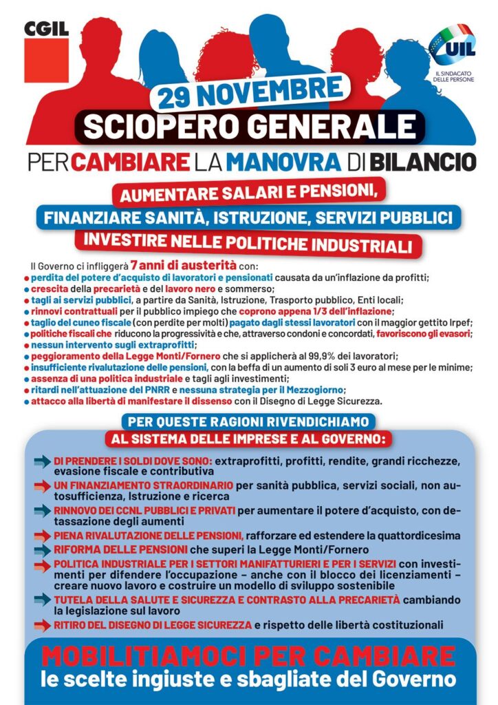 Sciopero generale 8 ore venerdì 29 novembre