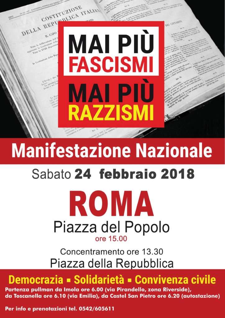 La Cgil, insieme alle altre ventidue organizzazioni promotrici dell’appello, scenderà in piazza a Roma sabato 24 febbraio per la manifestazione nazionale ‘Mai più fascismi, mai più razzismi’. Il concentramento è previsto alle ore 13.30 in piazza della Repubblica e il corteo sfilerà fino a raggiungere piazza del Popolo, dove alle ore 15 inizieranno gli interventi dal palco. Partecipano Susanna Camusso e tutta la segreteria nazionale della Cgil.