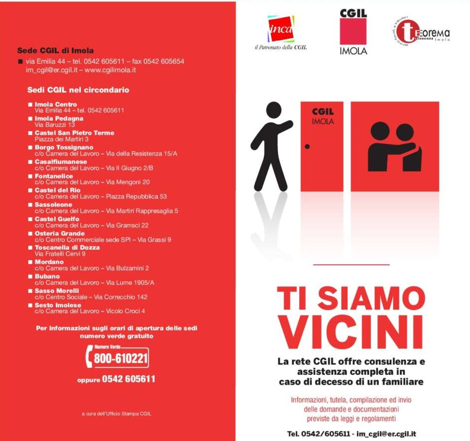 La Cgil di Imola, insieme a Inca e Teorema Imola, hanno strutturato un nuovo servizio – “Ti siamo vicini” – per offrire consulenza e assistenza completa in caso di decesso di un familiare.