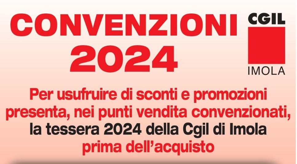 Sei iscritto/a alla Cgil di Imola? Presenta la tessera 2024 prima dell’acquisto nei punti vendita che hanno aderito alla convenzione. Per te sconti e promozioniContinua a leggereConvenzioni 2024 per chi è iscritto Cgil Imola