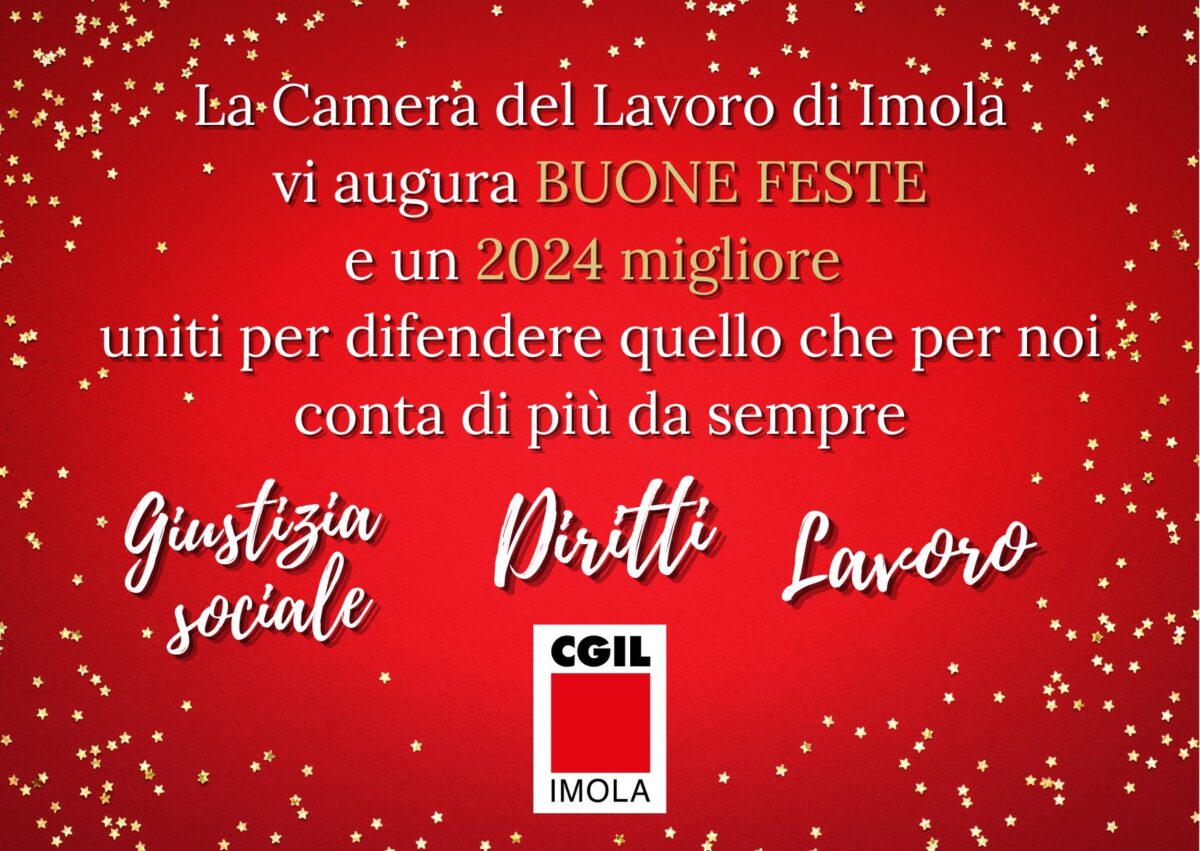 La Camera del Lavoro di Imolavi augura BUONE FESTEe un 2024 miglioreuniti per difendere quello che per noi conta di più da sempre GIUSTIZIA SOCIALELAVORODIRITTIContinua a leggereAuguri dalla Cgil di Imola