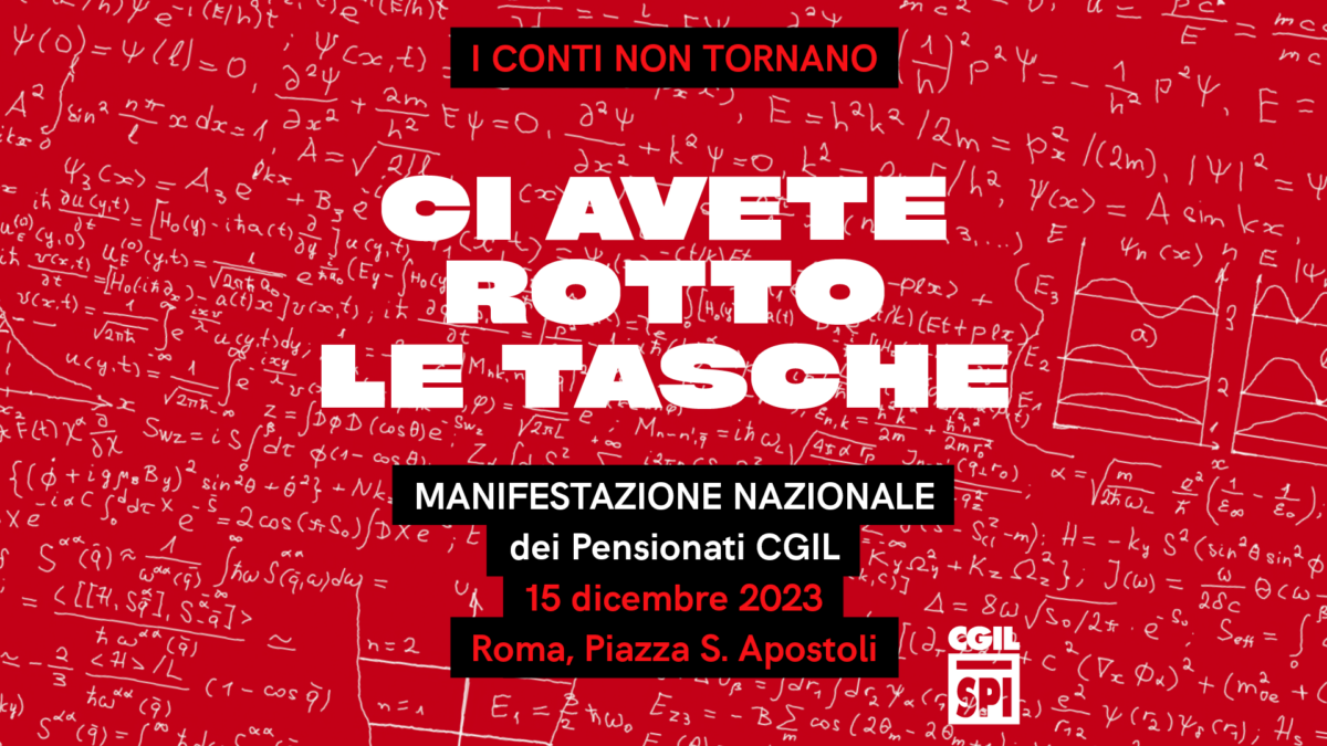 15 dicembre manifestazione nazionale SPI CGIL a Roma Dopo essere stat* presenti (a partire da maggio) a tutte le manifestazioni/scioperi promosse dalla Cgil e dallo Spi, ancora un a volta le pensionate e i pensionati di Imola scendono in piazza per rivendicare un potere d’acquisto che permetta di “arrivare a fine mese”, una sanità pubblica…Continua a leggereCi avete rotto le tasche!