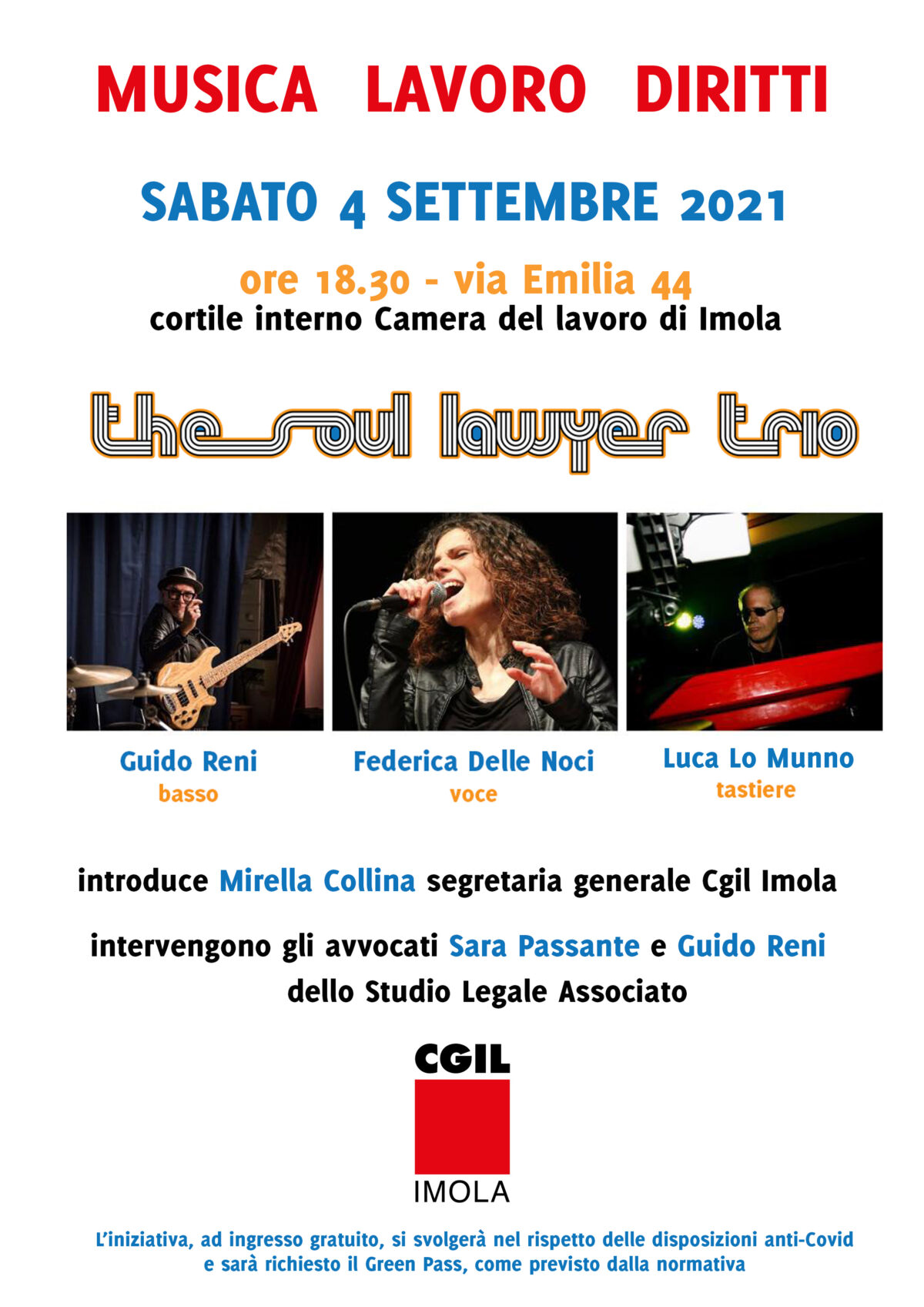 Sabato 4 settembre, ore 18.30, cortile interno Camera del Lavoro di Imola, via Emilia 44 Un avvocato del lavoro che suona il soul. Caratteristiche perfette per l’iniziativa “Musica Lavoro Diritti” a cui abbiamo il piacere di invitarvi, che si terrà sabato 4 settembre alle ore 18.30, nel cortile interno della Camera del Lavoro di Imola,…Continua a leggereMusica Lavoro Diritti, iniziativa per “Imola in musica”