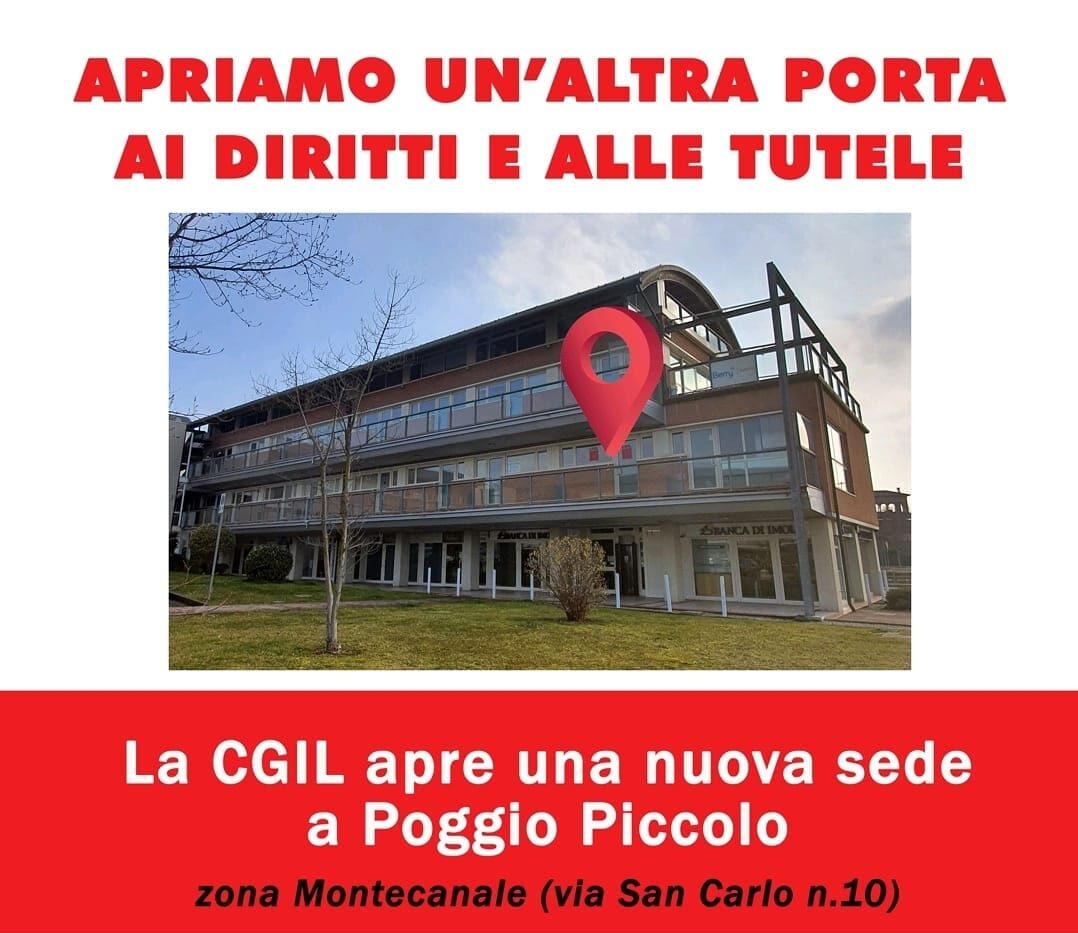 La Cgil di Imola ha inaugurato questa mattina una nuova sede a Poggio Piccolo, nell’area produttiva San Carlo (zona Montecanale, via San Carlo 10), alla presenza dei sindaci di Castel Guelfo, Claudio Franceschi, e di Castel San Pietro, Fausto Tinti. «Le lavoratrici e i lavoratori potranno contare su un ulteriore punto di riferimento per la…Continua a leggere“Apriamo un’altra porta ai diritti e alle tutele”: la Cgil inaugura una nuova sede a Poggio Piccolo nell’area San Carlo