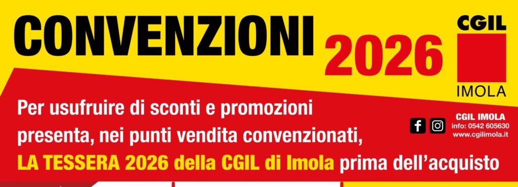 Con il tuo supporto la Cgil continua a difendere i diritti delle lavoratrici e dei lavoratori, a promuovere il lavoro dignitoso e a lottare per migliorare salari e condizioni in… - Convenzioni 2026 con la tessera CGIL Imola