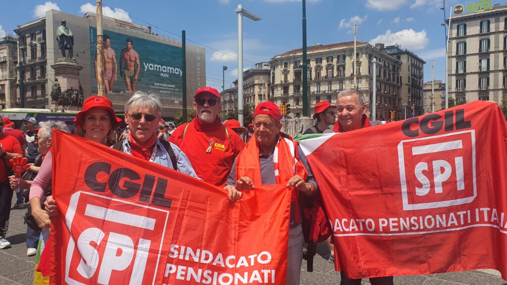 A Napoli il 25 maggio siamo scesi in piazza, Spi Cgil Imola presente, per ribadire la necessità di un cessate il fuoco in tutte le aree del mondo dove si allarga la carneficina e la corsa al riarmo, per una transazione ecologica fondata su una nuova qualità di lavoro e sviluppo, per il diritto a un servizio sanitario